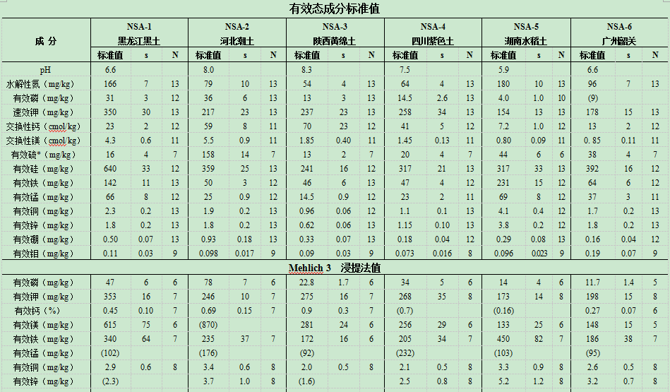 本系列六種土壤成分參比標(biāo)準(zhǔn)物質(zhì)主要用于全國耕地調(diào)查與質(zhì)量評價樣品分析的參比標(biāo)準(zhǔn)與質(zhì)量監(jiān)控; NSA系列為有效態(tài)成分,NST系列為全量成分。